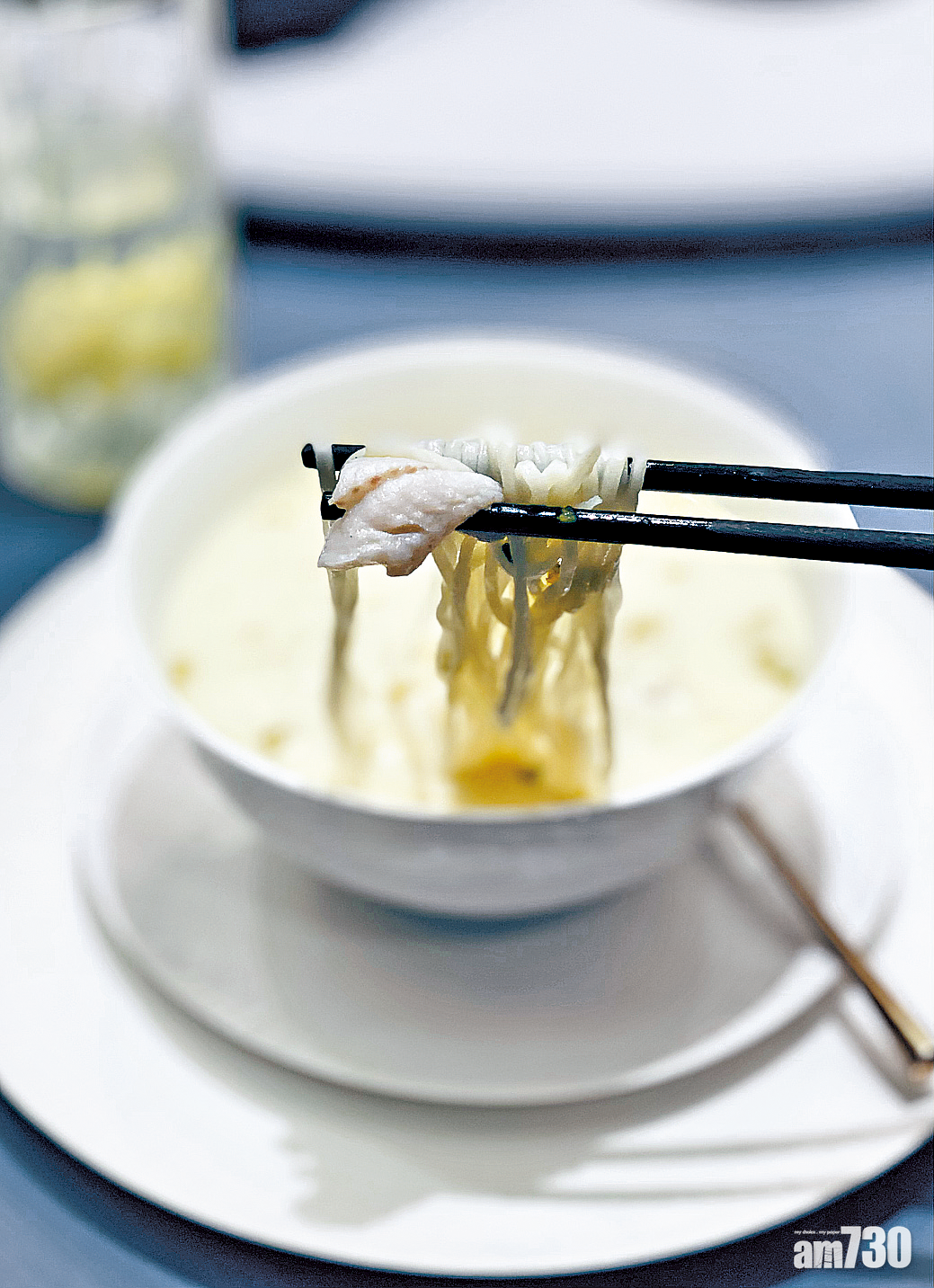 黄魚麵─吃湯麵從來是溫度決定高度,餸的多寡不是重點,湯底差就算麵上有十斤肉也沒用,甬府的黄魚麵來一個最佳示範,相機先吃後,魚湯仍然熱燙,入口味濃順喉,湯中的雪裡紅提供層次感,麵質好得無可挑剔,魚片作為配角亦恰如其分,極致表現,我敢說這碗麵足以橫掃香港用魚湯作賣點的日式拉麵店。