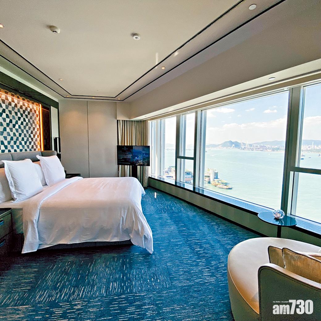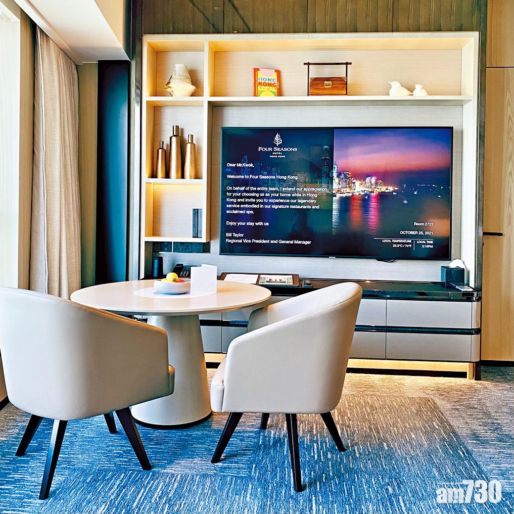 四季酒店套房客廳坐擁維港180度無敵大海景。