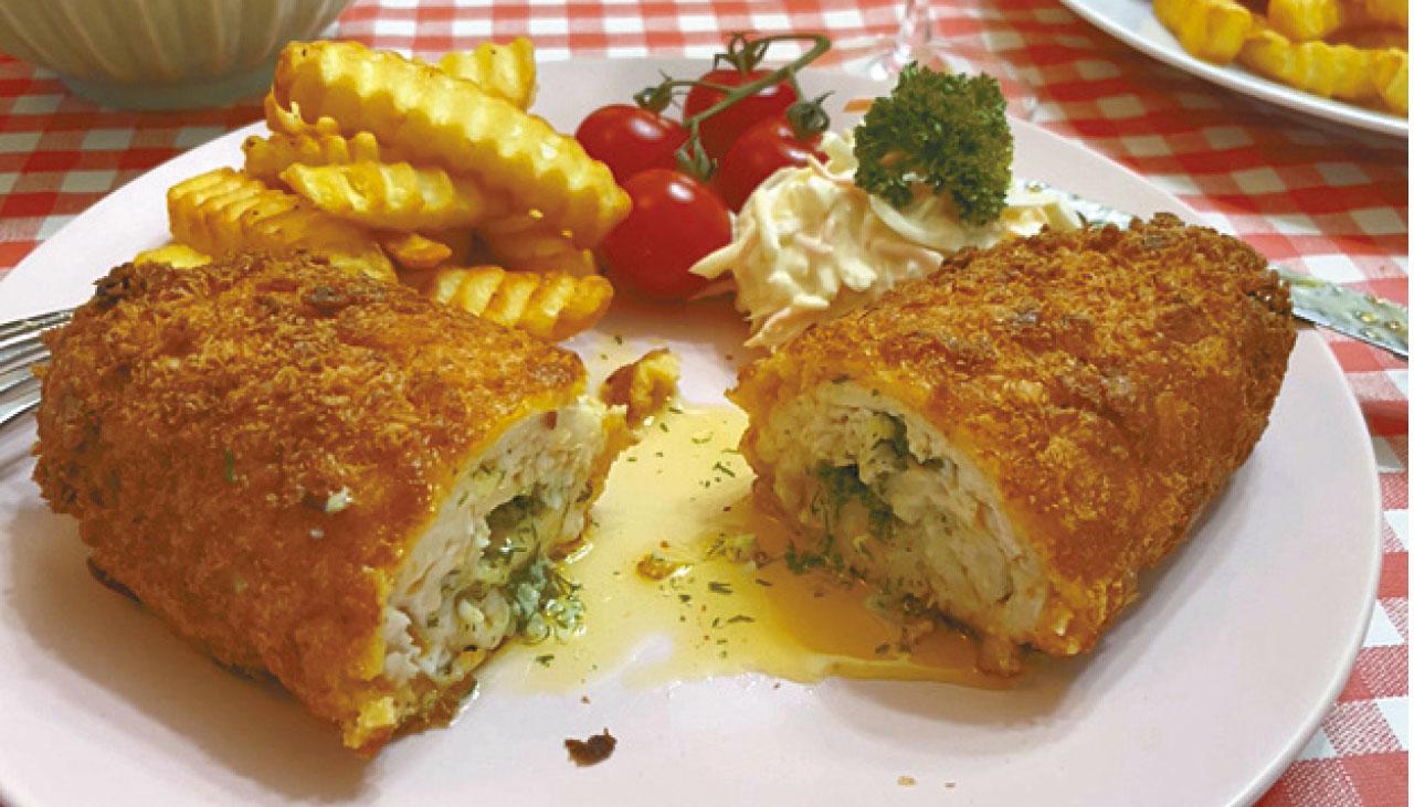 這道菜的主角是雞胸肉,始終容易煮過火致肉質過乾變柴。可試着在雞肉上抹上一層牛油才捲起,利用油脂改善肉質;又或者先將雞胸肉放進加了胡椒的鹽水浸泡一夜(brining)才敲薄、包餡,這樣做出來的基輔雞卷變外脆內嫩、雞肉柔軟多汁並富香氣。
