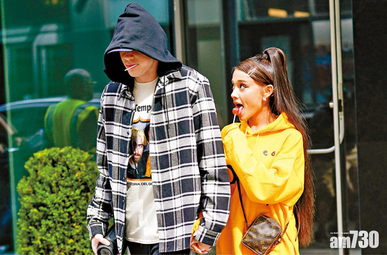 名人推波助瀾,個個hoodie上身,圖為Pete Davidson與Ariana Grande。