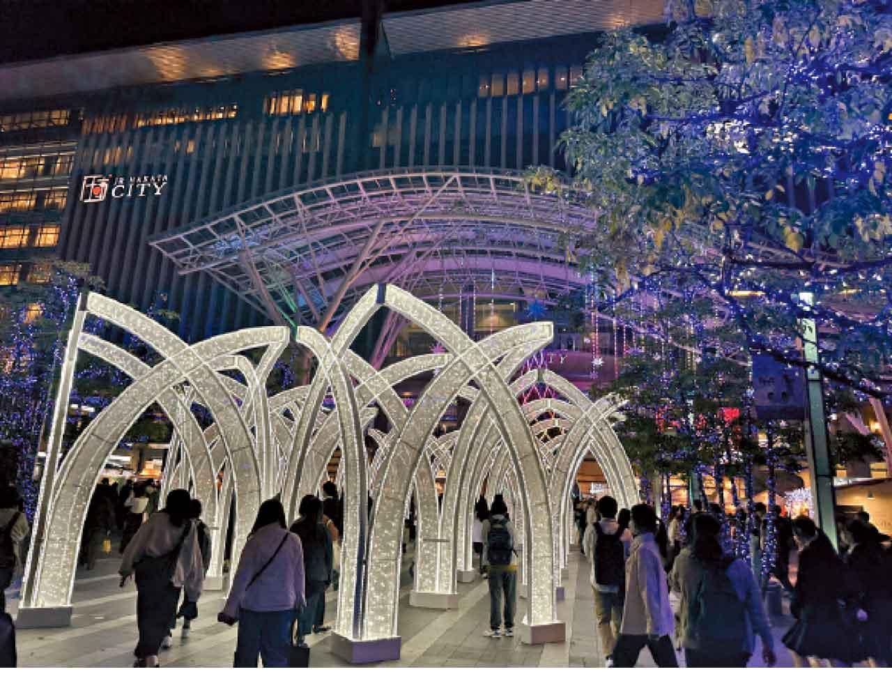 十一月我在福岡之時,博多車站、福岡市役所西側廣場、中洲中央通、縣營天神中央公園等地,被64萬顆藍白色LED燈點亮,浪漫氣氛包圍著市中心。