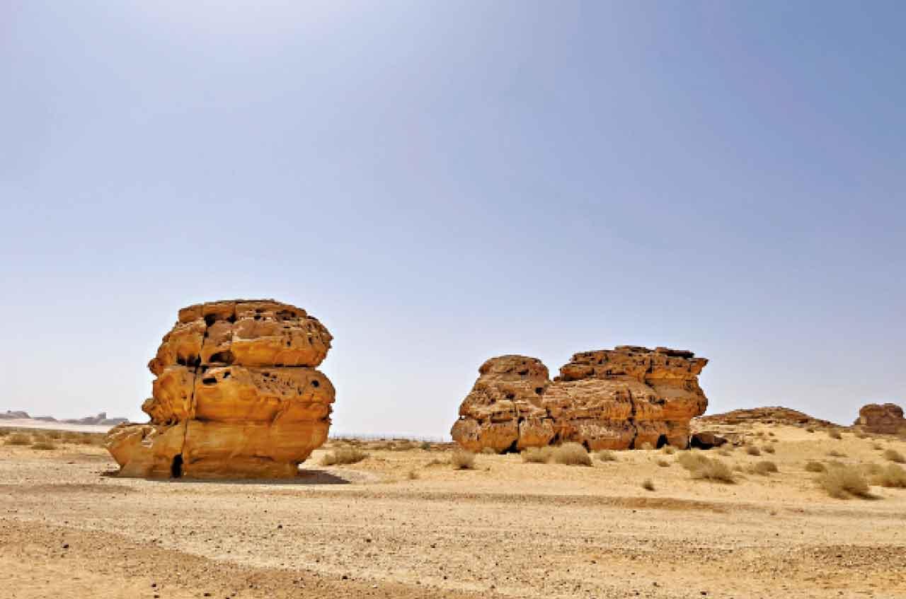 當車子愈駛愈深入沙漠中央,就能看見像從天跌下、隨意散落在沙漠不同位置的巨型奇石,全部都有數層樓高,就像走進了異星球。二千年前,擅長尋找並儲存水源的納巴泰人(Nabataeans)在沙漠中存活下來,還壟斷了沙漠貿易通道,將沙特盛產的乳香、沒藥以及其他香料穿越阿拉伯半島,運往歐洲市場,由此累積了大筆財富,並發展起獨特的納巴泰王國(Nabataean Kingdom)文明,版圖一時無兩。