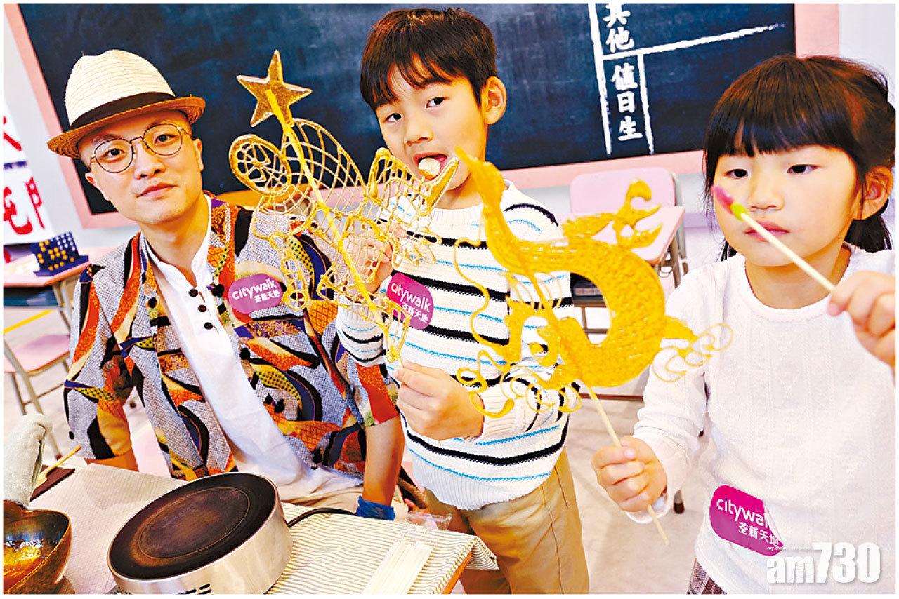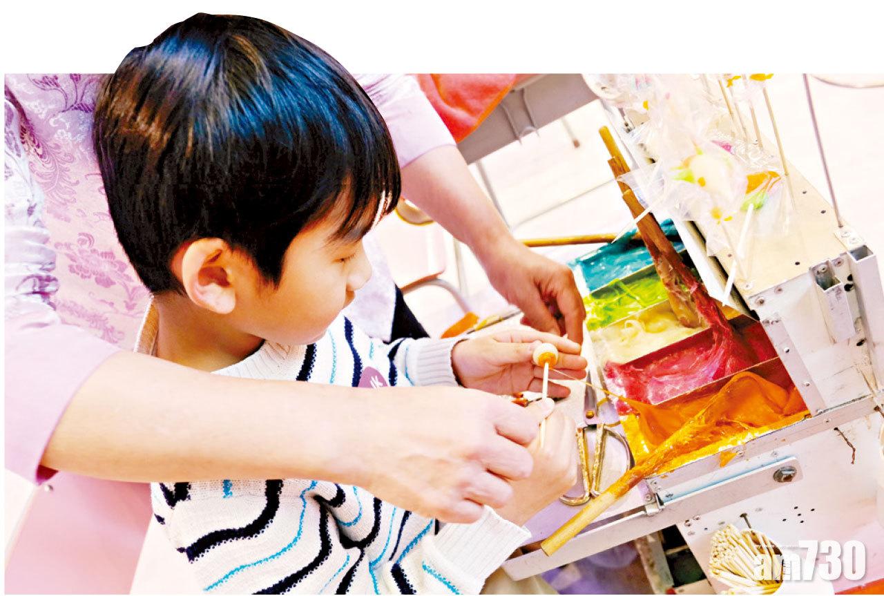 中式吹糖工作坊,糖姨教小朋友炮製波板糖,還教謙謙拉糖。