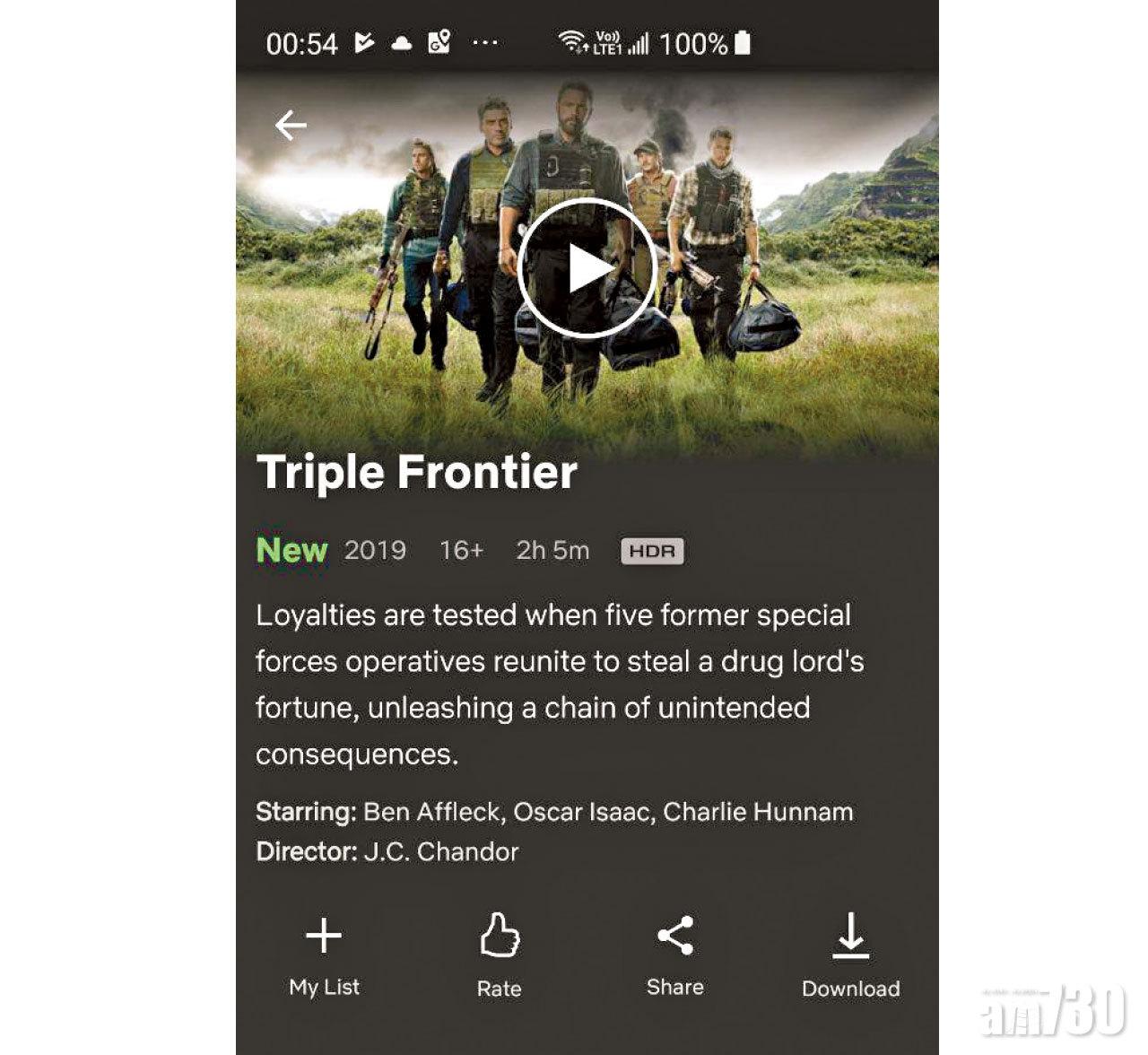 三星屏幕色彩鮮豔是不爭的事實,唯今次這一塊Dynamic AMOLED屏幕,全球首次支援HDR10+,如果你是Netflix用戶,不妨嘗試觀看由Ben Affleck主演的《Triple Frontier》,你會在介紹一欄看見HDR字樣,有支援HDR的電影中,色彩及光暗的層次非常分明,真的有衝動盡快把家中的電視,也換上有支援HDR技術的新型號。