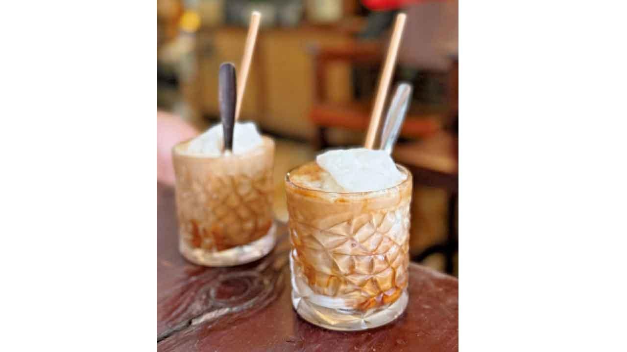 她每杯拿來試一口,說:「選中了。原來椰汁咖啡是那麼迷人,好吧!我想多要一杯,別阻我,回家再減。」