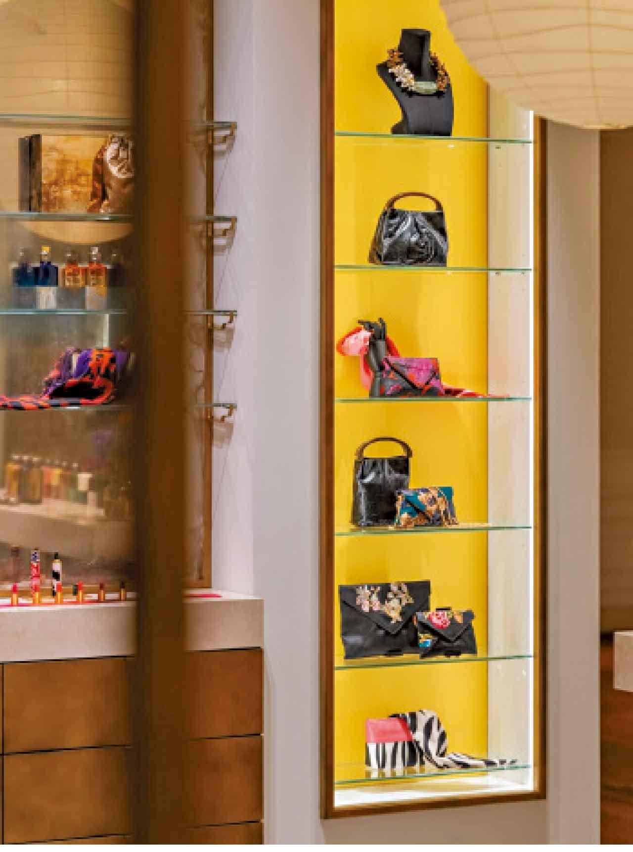 專為京都而設嘅空間,主打香水、美妝產品同配件。一入門口,就會見到以十八世紀佛蘭德斯紡織品做背景嘅配件牆,氣氛即刻好有畫面感;由Ernest Igle Hoffman設計嘅書桌造型感十足,成為全店視覺焦點。空間入面仲用咗由岐阜老字號燈籠工房大關製作、野口勇設計嘅「AKARI」吊燈,柔和燈光加上濃厚日式風格,配合黃色絲綢展示位同大理石枱面,層次感相當豐富。