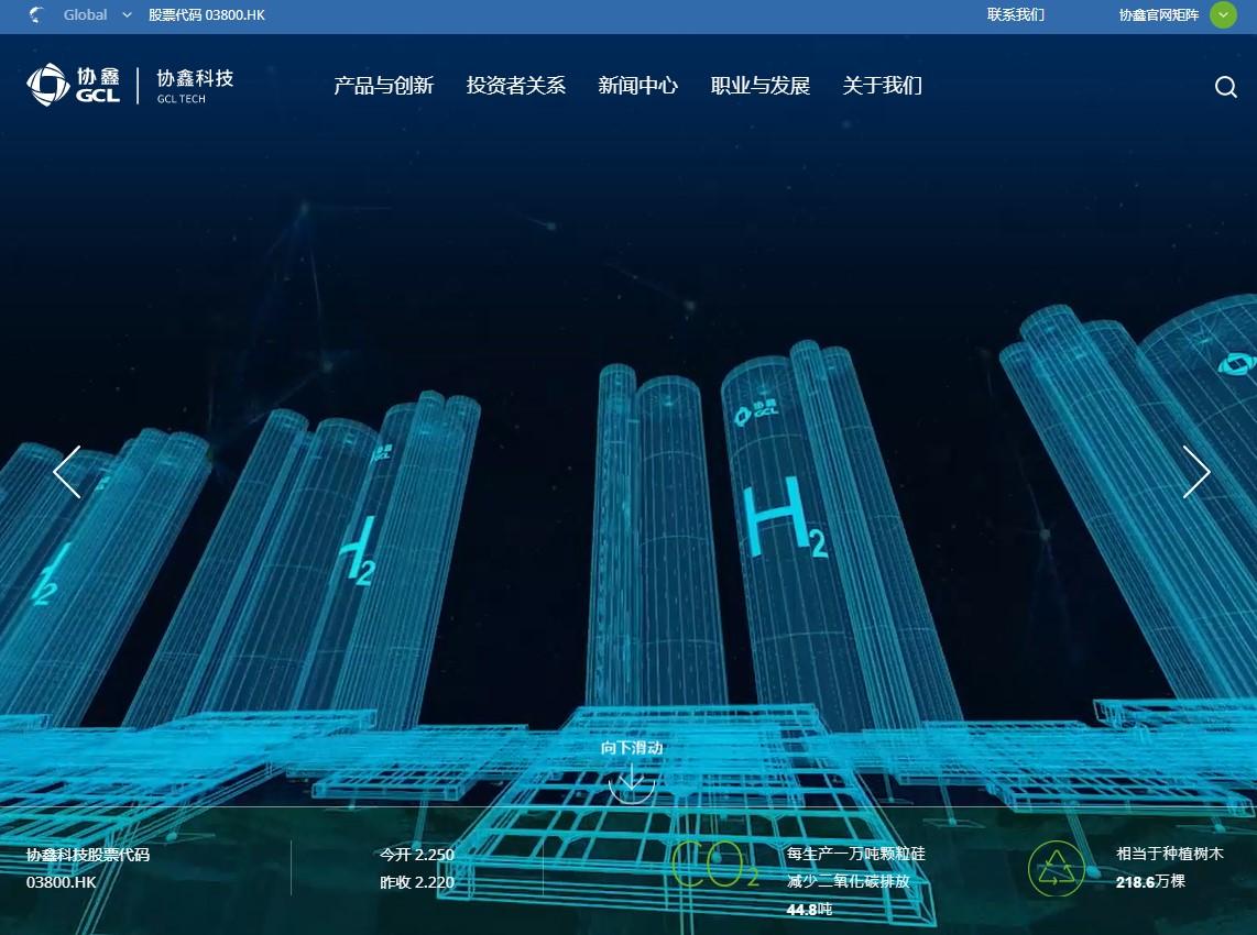 協鑫科技是全球光伏材料領域的領先生產商。去年受惠多晶矽價格持續上升。圖為其網站。
