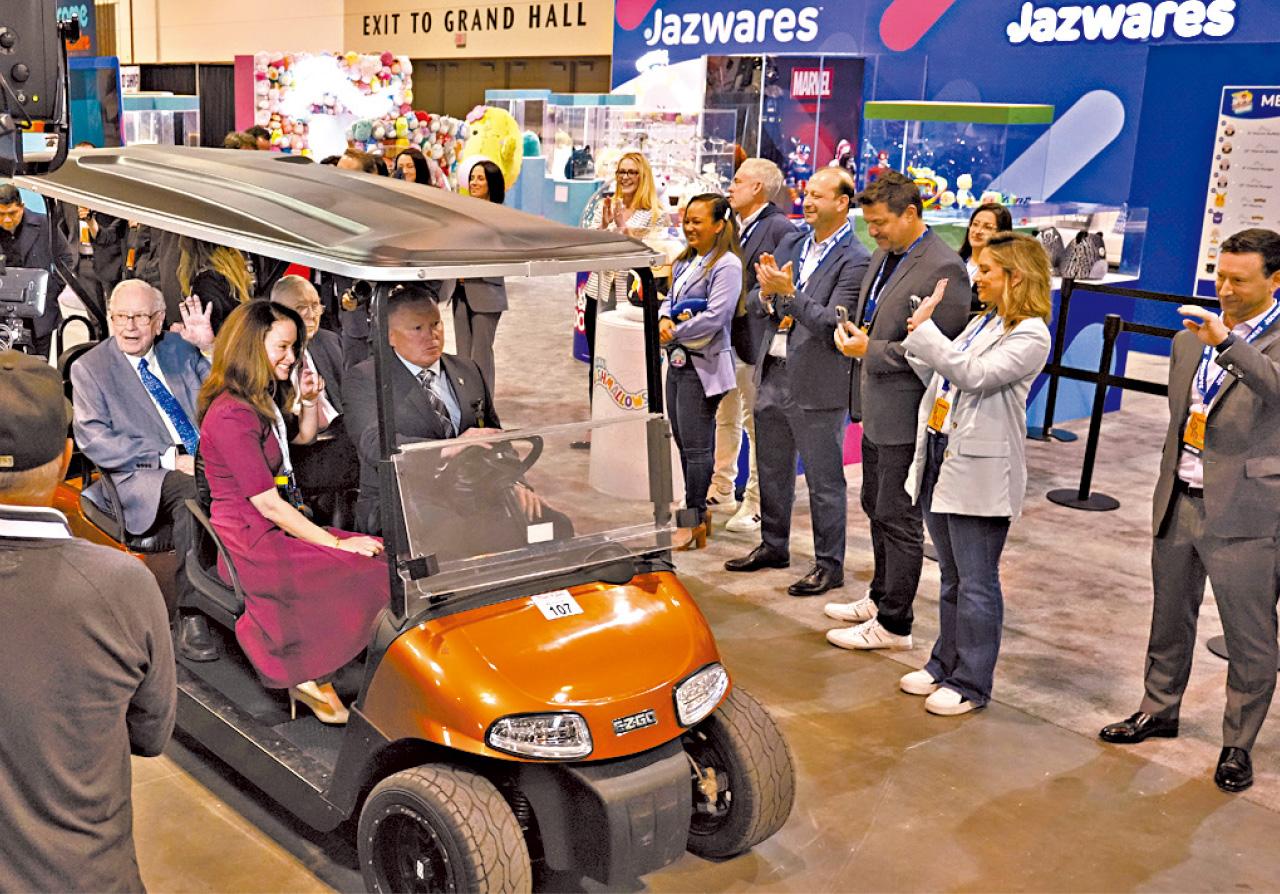 巴郡今年首季純利355億元美元(約2,769億港元),按年大增5.4倍。巴菲特(左)及芒格(右)日前出席股東會。(美聯社)