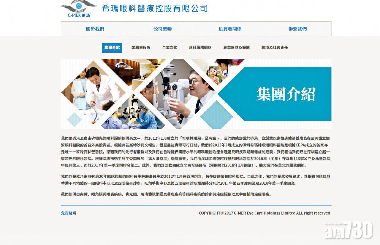 早於去年7月寫了篇《眼科名醫也上市》,提及由著名眼科醫生林順潮創立的希瑪眼科(3309)申請在港上市。說時遲那時快,希瑪在去年底前完成了申請程序並公開招股,集資額5.71億元,招股價介乎2.35元至2.9元,股份將會在下周一掛牌。