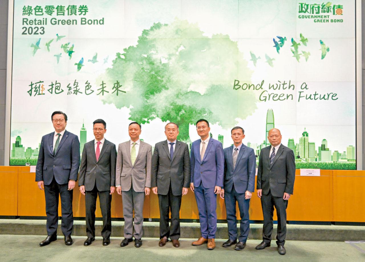 港府去年發行的綠債上市即破發,今年保證息率大幅調高;圖為今年綠債發行記者會。(資料圖片)