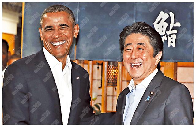 美日首腦早前在「數寄屋橋次郎」晚宴。(資料圖片)