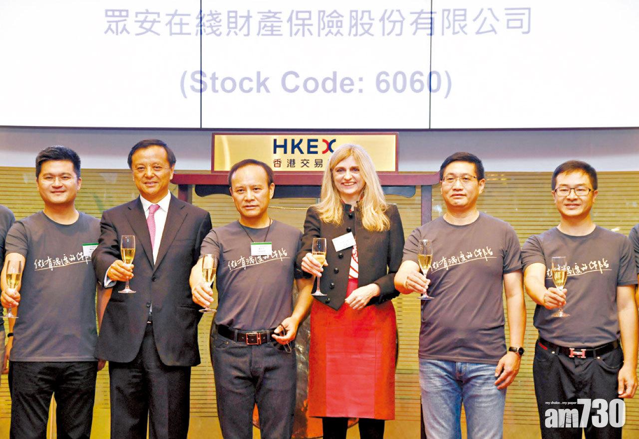 眾安昨收挫2.3%,報33.6元,較去年9月28日上市價59.7元低43.7%。(資料圖片)