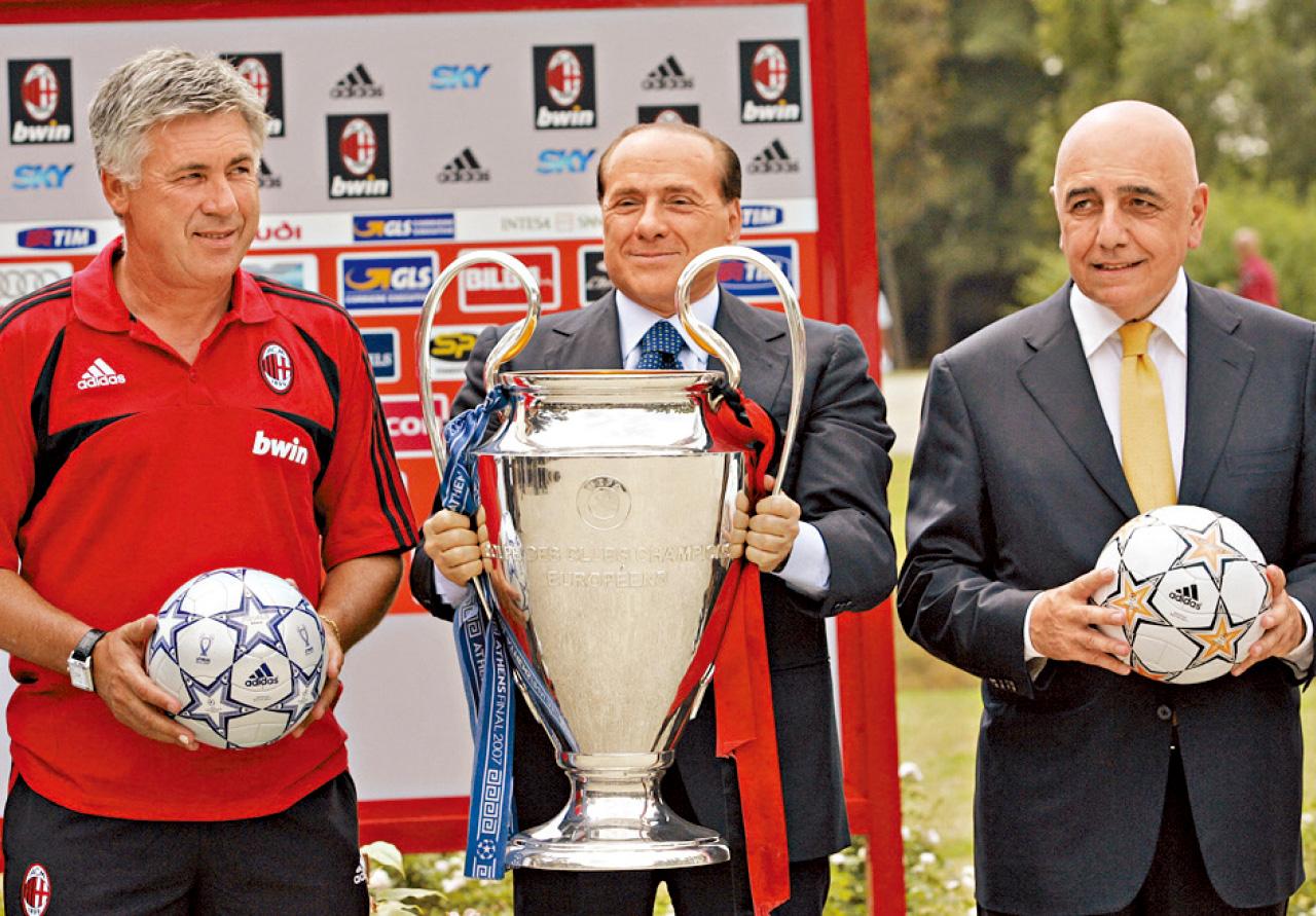當然貝盧斯科尼手上的鈔票,也足夠令後來的主帥安察洛堤從羅馬加盟。由貝總執掌米蘭的前10年,基本上已成為世界第一球會,94年歐冠決賽以4球大炒由告魯夫執教的「夢一」巴塞隆拿更是令人窒息……最難得的,是當時已掌控意大利商業電視80%的貝總,同樣運用建構在球隊之上,在球會商業領域營造出一個巨大品牌;完全接受全新思維、戰術,所以較少人提到的是不斷刷新轉會紀錄、高工資之餘,貝盧斯科尼善於發掘,並大膽起用那些無甚名氣、卻絕對是新派戰術思想的年輕教練,包括寂寂無名的教練沙基從柏爾馬加盟;之後便是由米蘭青年軍提升的卡比路。前者演繹出備受推崇的壓迫式進攻戰術;後者則締造出鋼鐵防線(93/94意甲竟只入36球但卻僅失15球),兩位教練共帶領AC米蘭5奪意甲,也3奪歐冠(5度入決賽)!至於2001年上任的安察洛堤,之前就算執教祖雲達斯戰績也不太突出,但到了「紅黑軍團」,不單最大錦標盡攬旗下,還有那「聖誕樹陣式」、同時使用4名10號球員一同上陣……