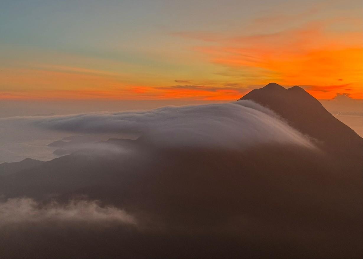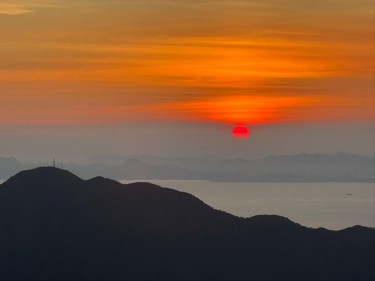 上山十分吃力,汗如瀑布,走上一節便需停下數秒喘息。沒有抽筋感,就是疲累。停步多次終到山頂,有放棄意慾,放慢心情坐在石上,遠眺山下海天一色,漂亮島嶼。慢跑下山,心情放鬆,怎料回到伯公岰後,卻想起大東山的日落。現在上山,也許剛到日落時分,今天萬里無雲的辛苦,但卻是夕陽的先決。一下衝動,爽步上山。烈陽變成淡黃光影,伴隨慢步石階。怎料愈走愈順,半小時到大東山頭,我「放棄」練習,轉路上山頂。下午六時四十五分,現場已有幾個遊人在拍照,我坐在石上等待日落。遠處鳳凰山頂,夕陽在旁慢慢下沉,天空染成通紅。忽然一縷白雲淹過山間,雲河流動,尤如仙境,坐著不願離開。最好的,就在差點放棄後的日落。