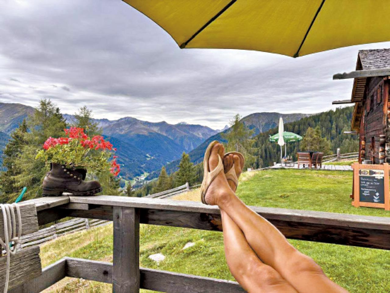 來到一所設計古色典雅的大樓,當年是接待不治之症病人的療養院,住在這裡,等於等待死亡。每個房間露台都有很大空間,原來是設計為病人可直放床椅,可躺臥在陽台休息照陽光。今天這裡換成為優雅的酒店,位置極目群山,高高在上。精緻的花園,裁種著不同品種的香草,且有漂亮花兒,正好在遠足數小時過後的歇息。花園旁更放有多張臥床長椅,遊人可付費淺嘗躺臥這裡的「滋味」。錦上添花是享用當區製造的精釀啤酒,不期然待至黃昏時分,太陽微黃才坐纜車下山。