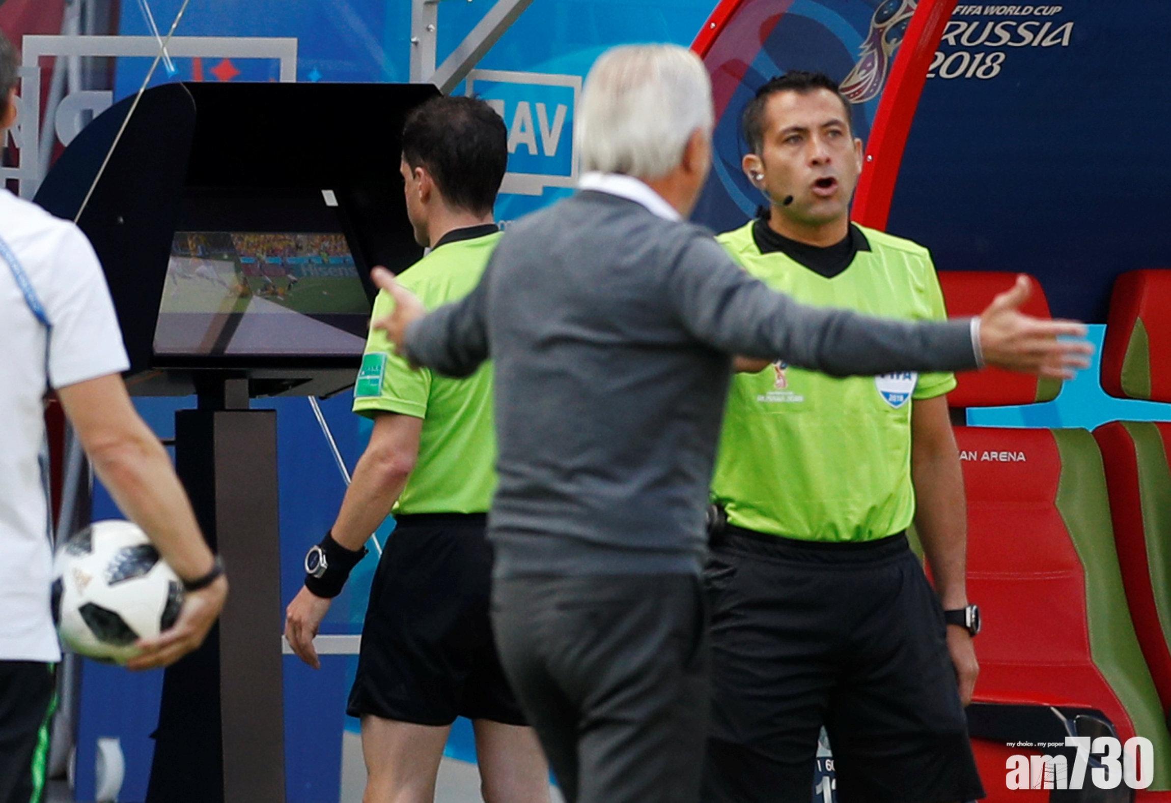 球證睇重播畫面,判罰澳洲12碼。(路透社)