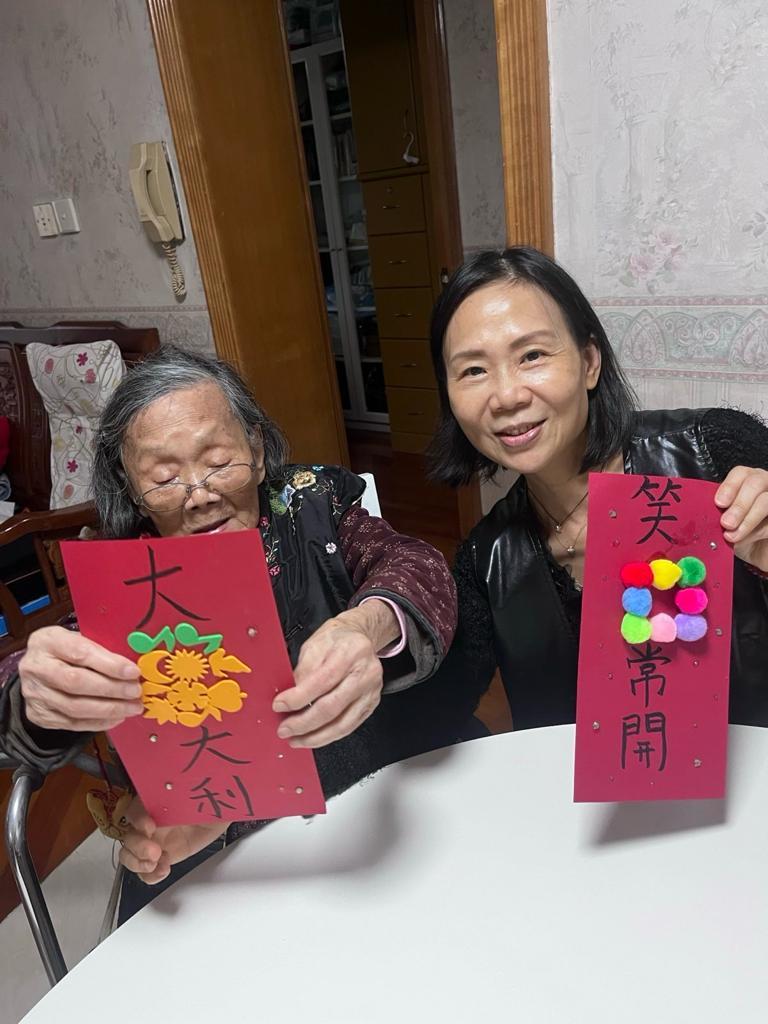既然有動態的活動,自然也有一些靜態的活動。服務計劃會安排同工上門與護老者一起做手作、畫畫、玩桌上遊戲等,透過一段寧靜放鬆的時間為他們紓減壓力,也間接提供社交和抒發情緒的機會。唐小姐為全職照顧者,主要照顧母親,唯母親十分倚賴女兒,可形容為「好痴身」。唐小姐希望可以讓自己放鬆一下,但不論想外出參加活動,或是找人代為短暫照顧都不可行。當她知道我們有為護老者而設的到戶活動時,感到十分驚訝及雀躍:「竟然不出門都可以有活動參加」。在過程中,長者都有參與部分活動環節,她們一同做手工,建立二人在日常照顧生活外的共同回憶和話題。同時,唐小姐亦透過專注做手作的過程找到「Me Time」,使平日集中在母親身上的注意力得到片刻的轉移,在不用擔心離開母親的情況下好好放鬆心情,享受尋找自我的快樂。