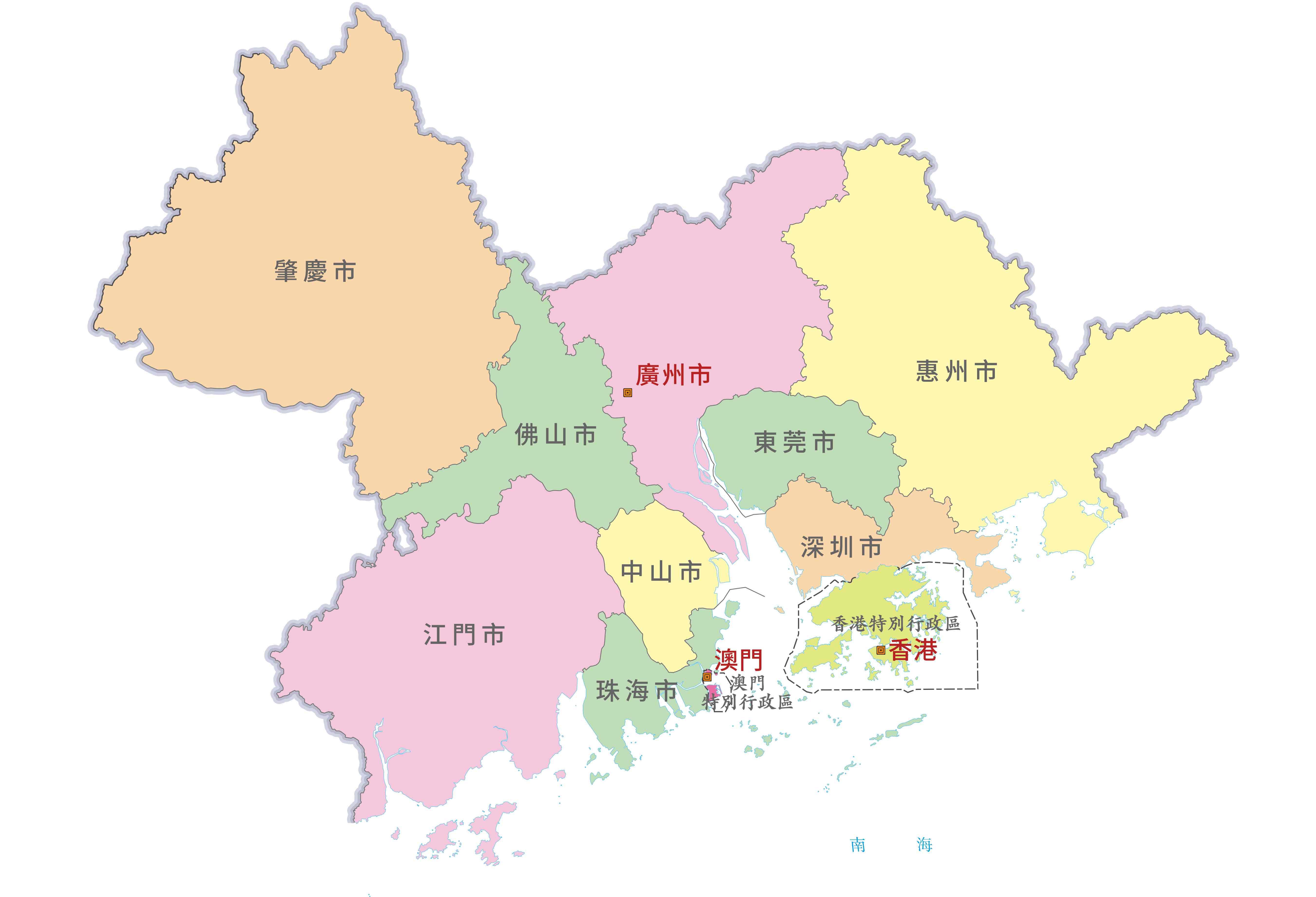 圖片說明:粵港澳大灣區幅員遼闊,香港本身也是其中一部分。(當代中國製圖)