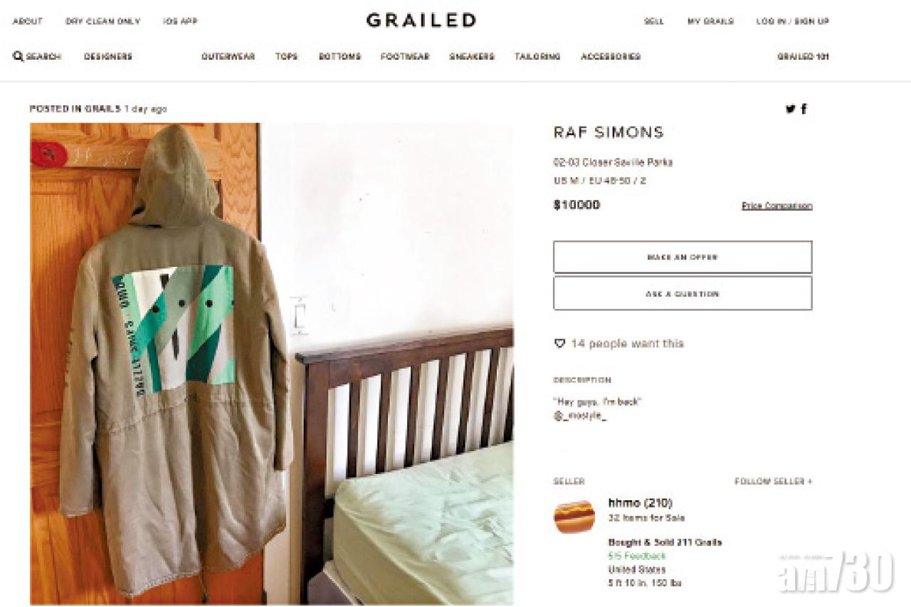 Raf Simons舊作在二手網站有價有市。