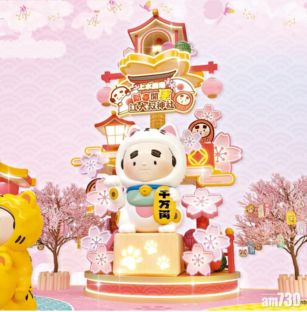 由1月15日至2月28日,上水廣場中庭將設3大開運場景,最矚目的必數5.5米高「招財貓開運神社」,有巨型江大叔招財貓坐鎮,而「情迷『桃』花園」及「有求必應大吉寺」,保證虎年行運一條龍。明白到大家對出外旅行有無窮的渴望,商場5樓戶外的「晴空花園」更化身為偽日本的「至瀛開運遊園」,猶如置身日本名勝景點,再次參觀鳥居、浸溫泉、觀賞富士山的體驗。