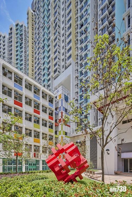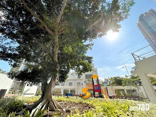 戶外盡量保留舊邨多棵原有大樹,融合於園林設計中,提倡可持續發展社區。