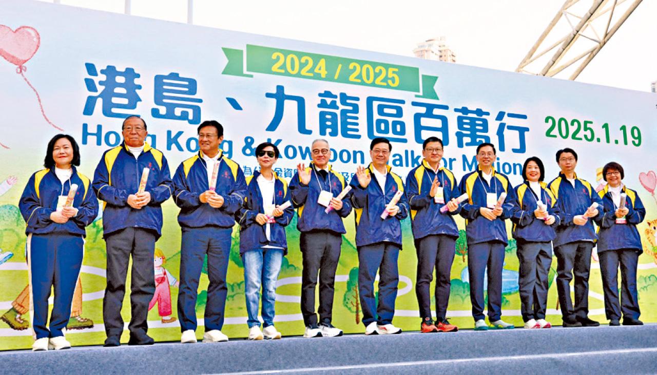 特區行政長官李家超(右六)、中銀香港副董事長兼總裁孫煜(右五)、公益金執行委員會主席郭少明博士(左五)等主持開步禮。