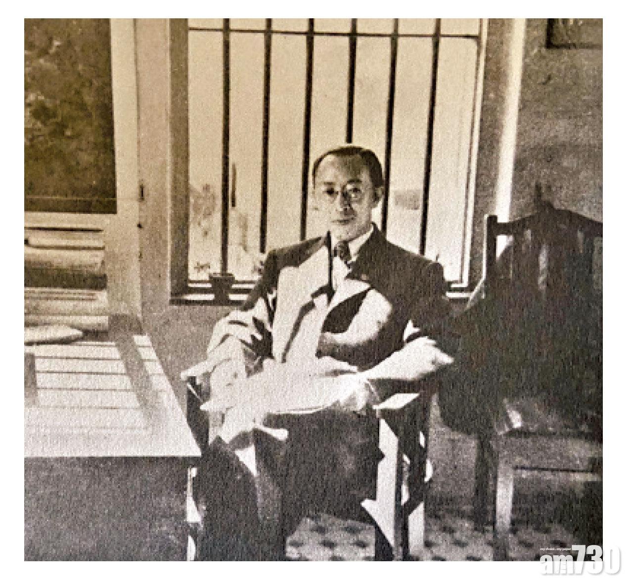 1940年代中,葉靈鳳攝於家中書桌前。
