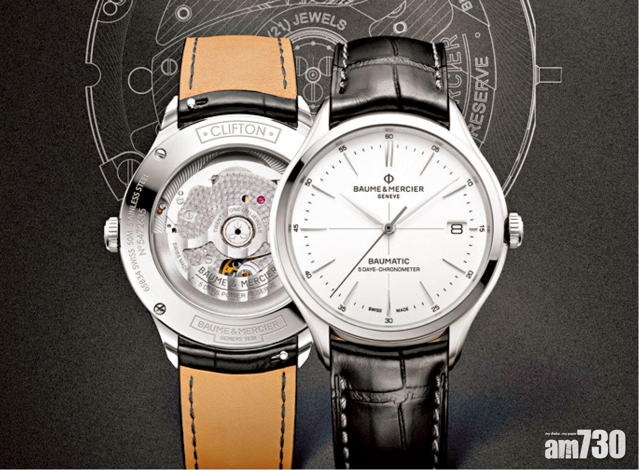 Clifton Baumatic的白色瓷面優雅而貴氣。
