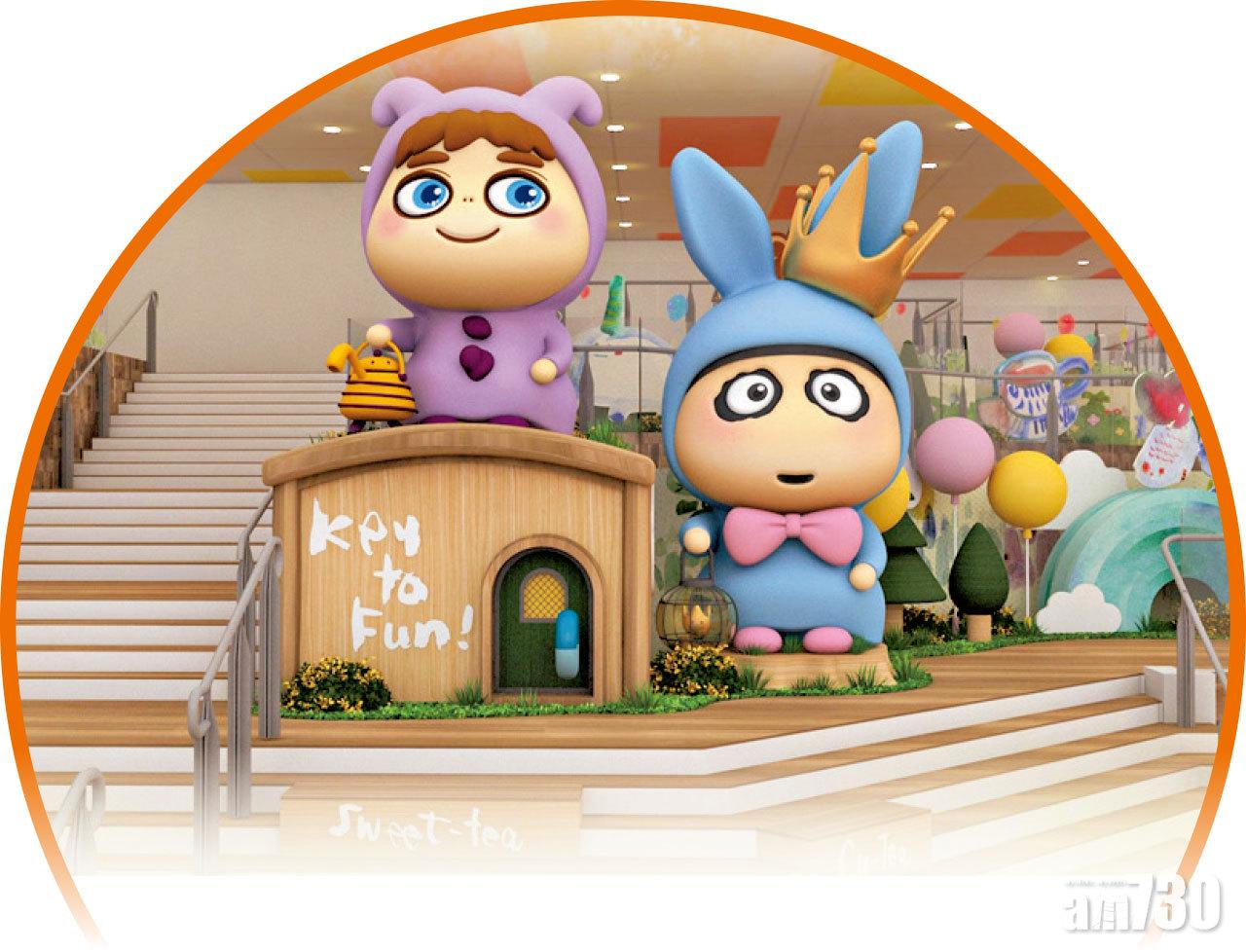 A仔、Kaka及好友小熊細佬、獨角雲等於KTopia花園迎接客人。