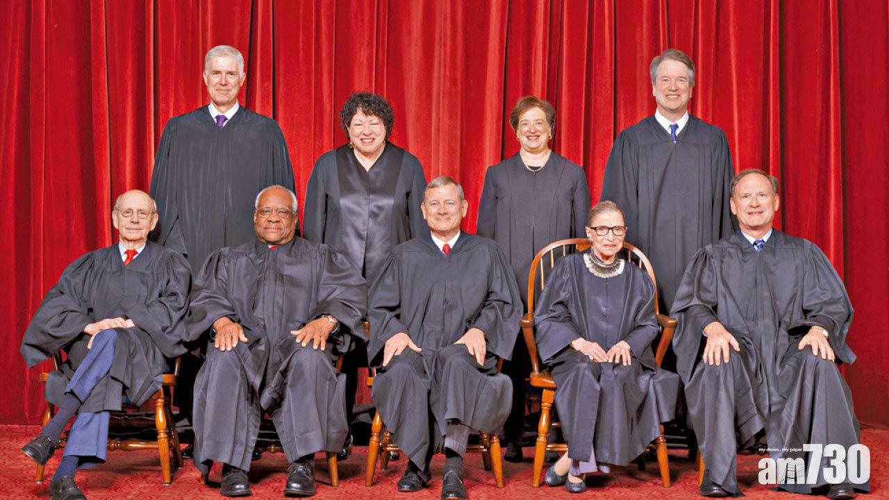 美國最高法院原有9位大法官,前排右二為上月病逝的金斯伯格。