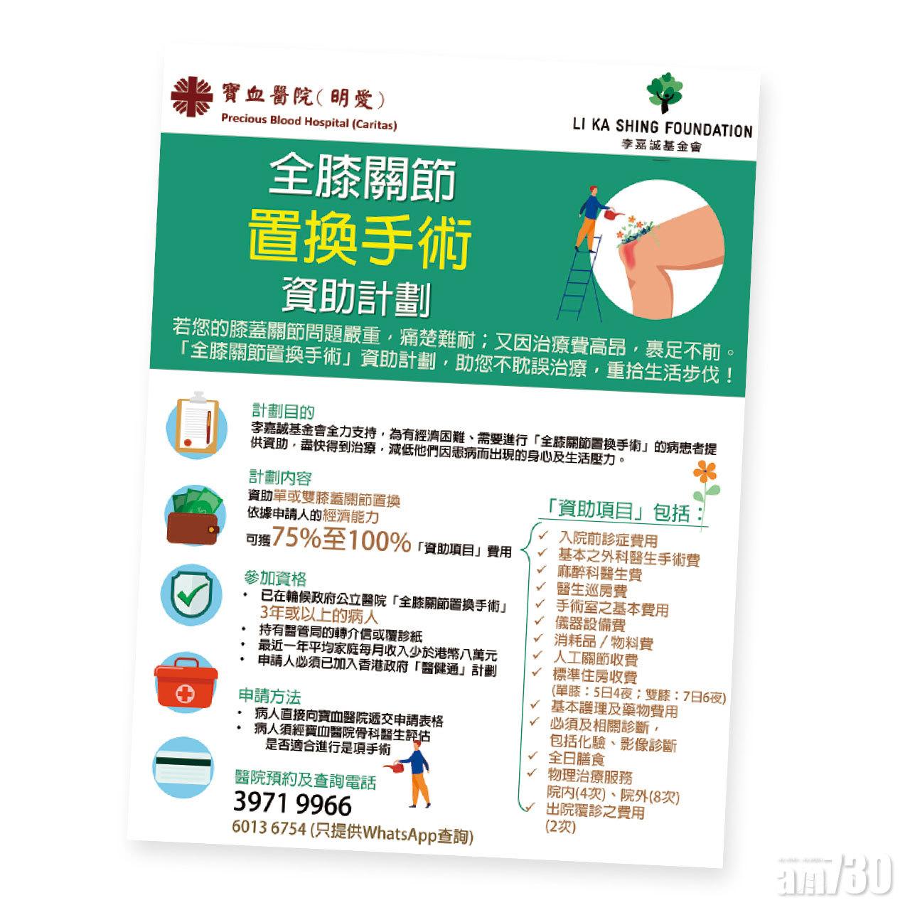 寶血醫院獲李嘉誠基金會資助2千萬 為200病人置換全膝關節