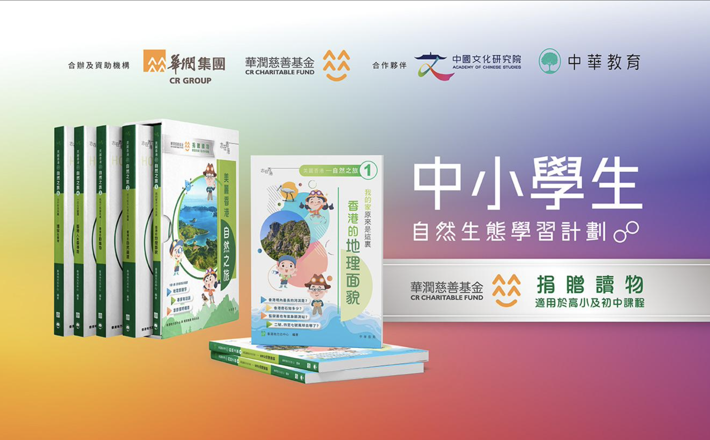 「中小學生自然生態學習計劃」將推出一套五冊的學校補充讀物《美麗香港 一 自然之旅》,並贈予全港約1,000家中小學。