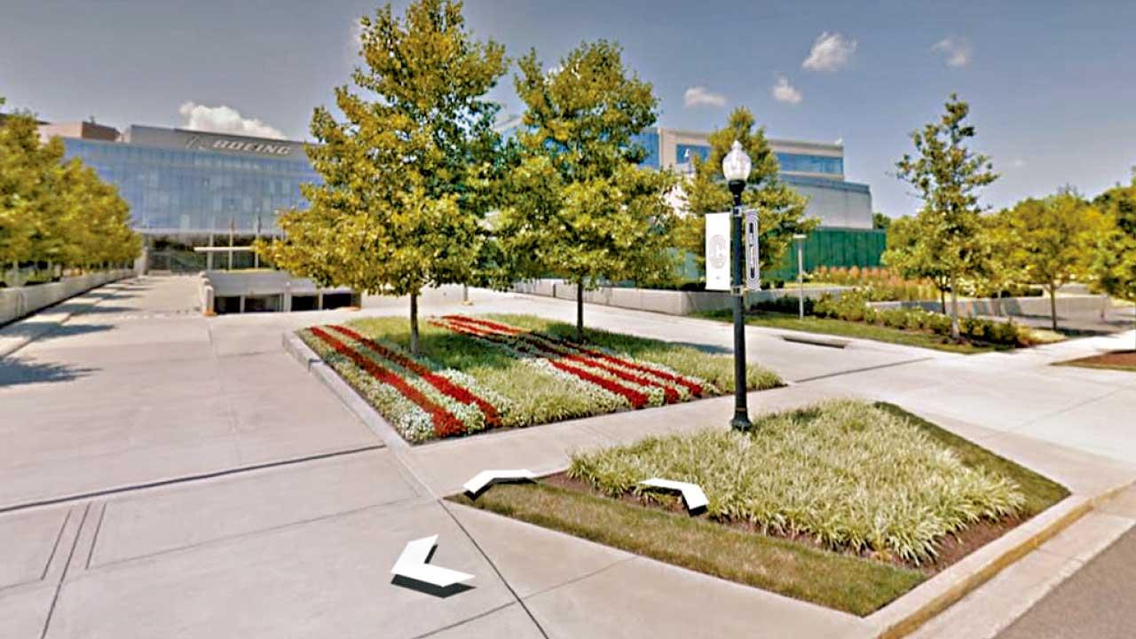 波音的總部一向在西岸西雅圖,合併後為方便到東岸與華盛頓政客來往,2001年把總部遷到中間的芝加哥,但為了減少飛來飛去,2022年宣布總部遷往「維珍尼亞阿靈頓」,在五角大廈及阿靈頓國家公墓南面,東面是一個小湖成無青龍之格。遷入此處後,波音的麻煩不絕,從風水的角度看,此總部坐西南坤向東北艮,九運是「雙山到向」旺星,到向主入財,但是細看,此大廈門口為方便汽車,有一條U形通道,是風水上所謂「門前八字水」主財來財去。而入門後中間有一條斜路下一層入地下停車場。似是方便駕車的老闆及職員,但風水上此形狀稱為「暗探」在艮方不利「外夷」,不利外國生意,而「暗探」有內部及陰暗地方之麻煩。
