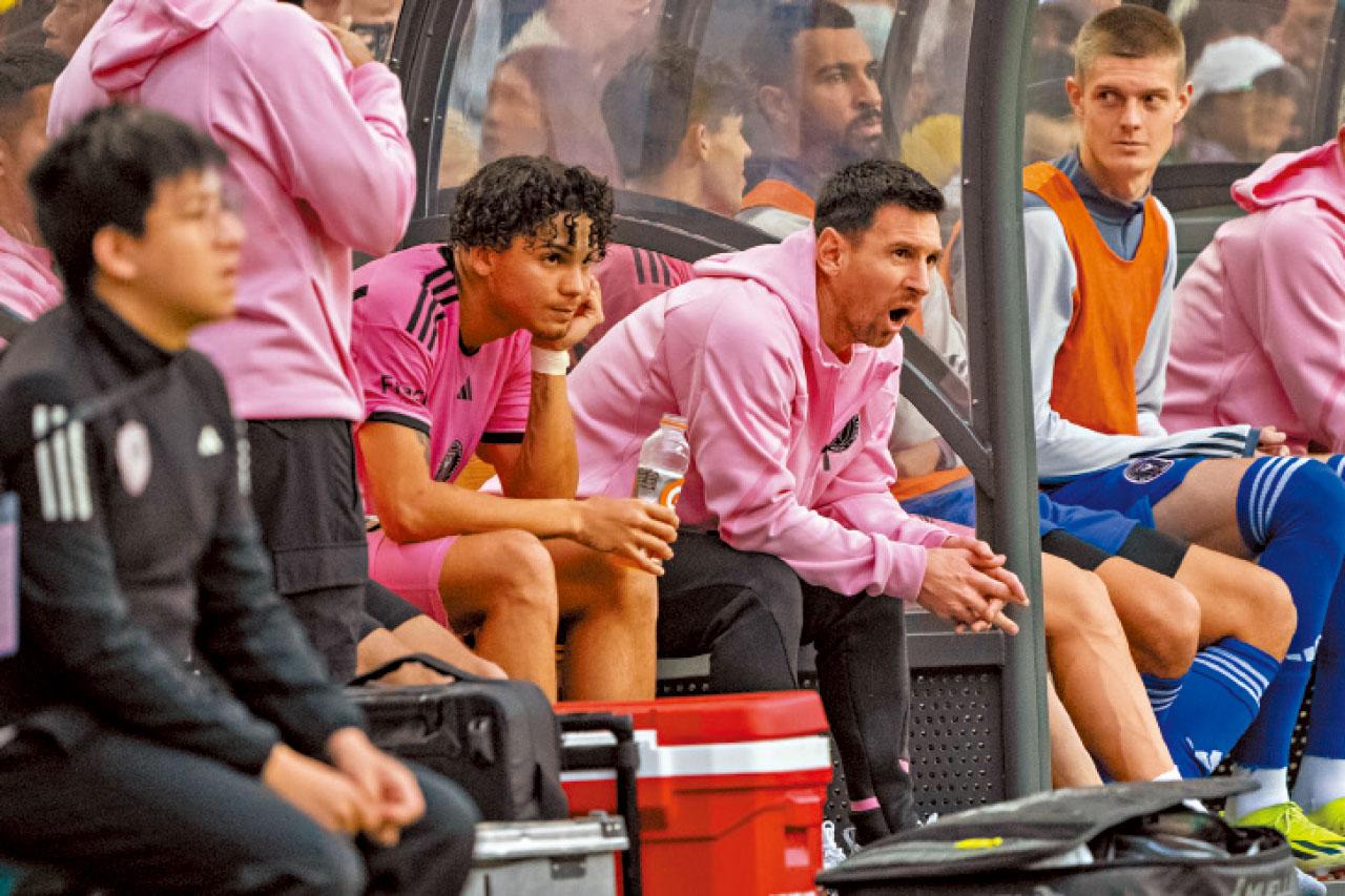 國際邁阿密昨與港隊踢表演賽,阿根廷球王美斯最終未有落場。(林靄怡攝)