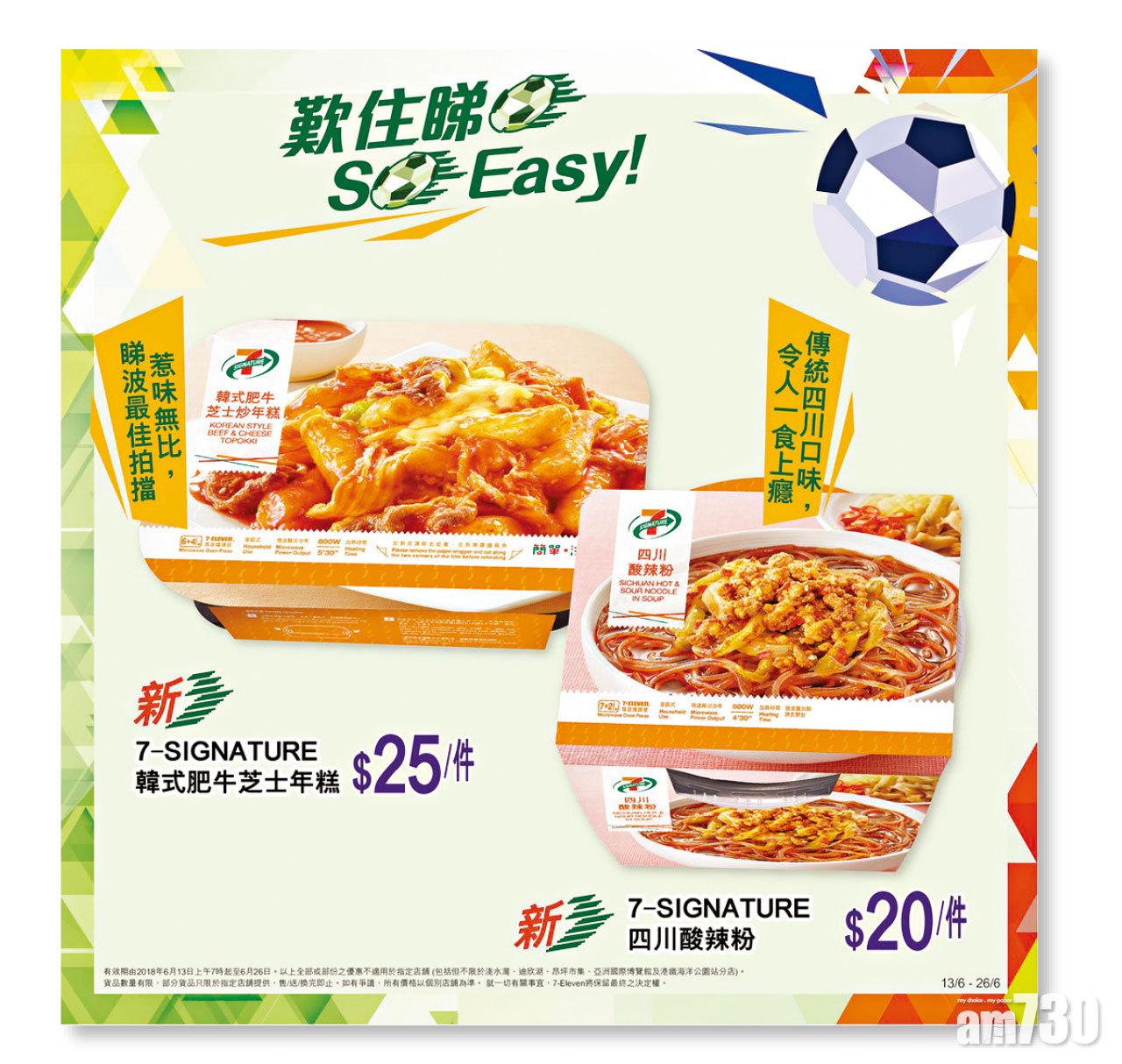 睇波季節,7-Eleven繼早前推出炒飯系列、意粉系列及冷麵系列,今次再推出飯盒系列,2款火辣新口味美食再度登場,包括7-SIGNATURE四川酸辣粉及7-SIGNATURE韓式肥牛芝士年糕,真係歎住睇波So Easy!