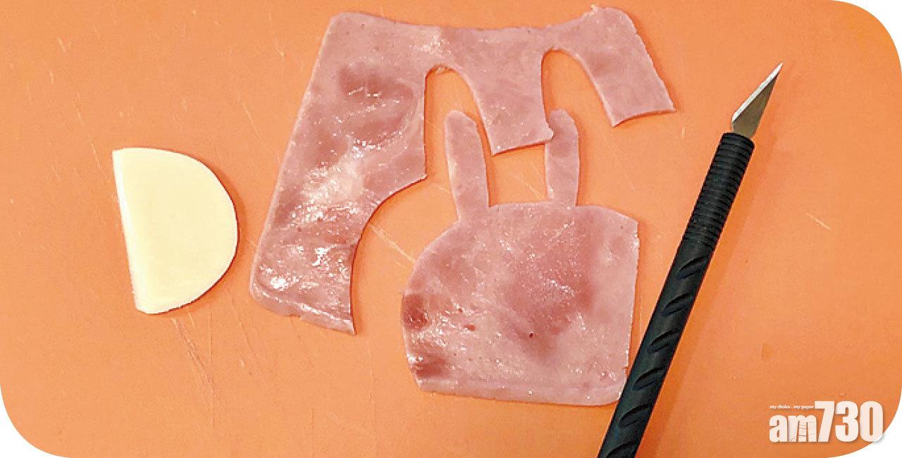 火腿以圓模印出小圓面;加上紫菜及芝士片做的小細節即成。