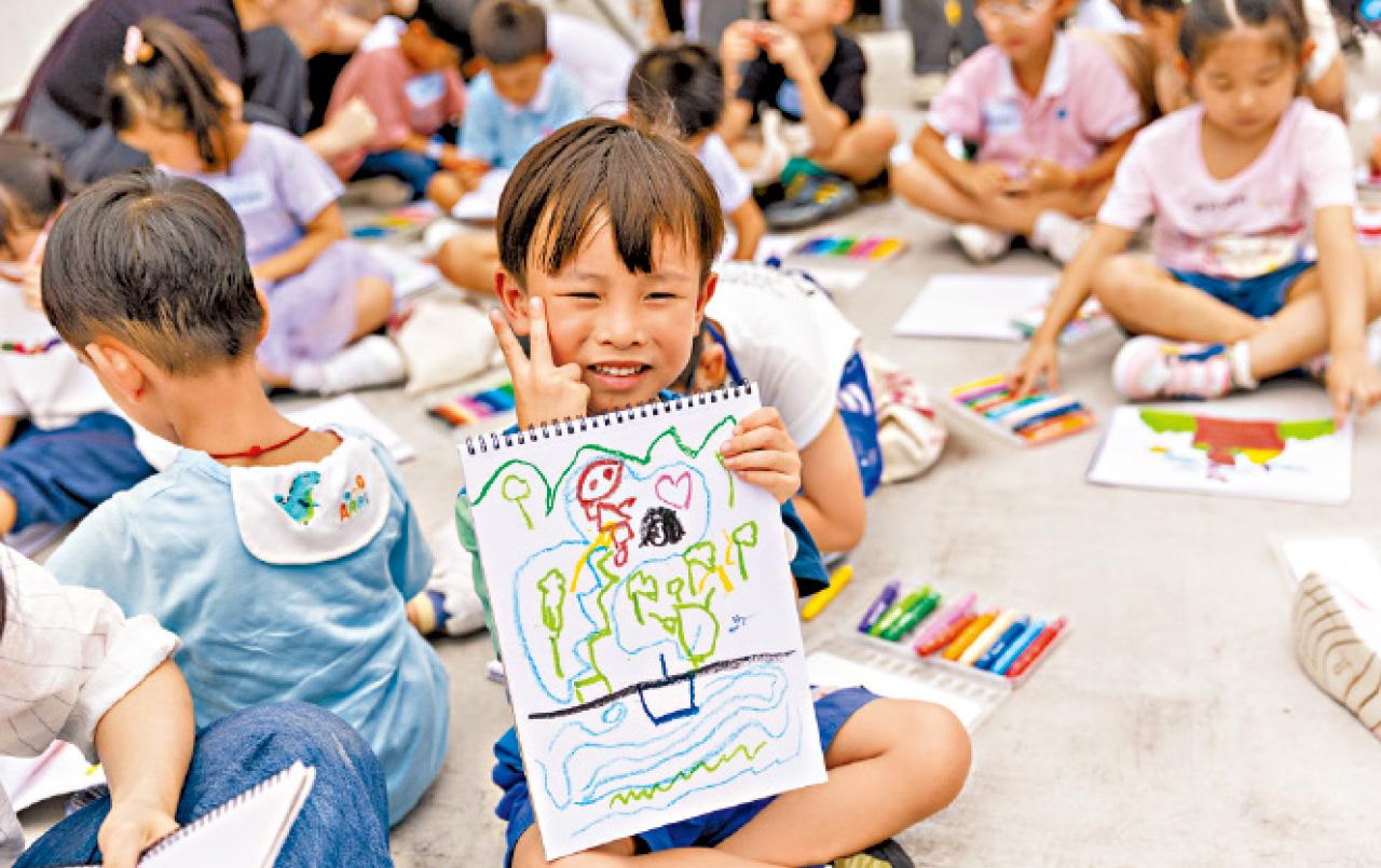 過百位小朋友、家長、幼稚園教師等到訪昂坪360,參加融合玩樂及觀光元素的寫生之旅。 參加今次由昂坪360贊助的「童悠共享 快樂共享工作坊」的小朋友,早前都有份參與幼兒繪畫比賽,他們是114名優秀入圍者,均獲邀參與一日郊外寫生之旅。
