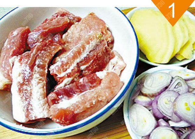 一字排骨 640克(或8條)、紅葱頭100克、薑160克