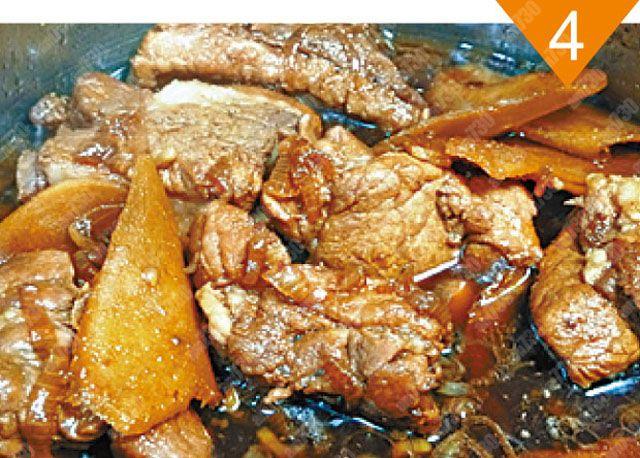 4.待排骨炆煮至軟身而煮汁轉深色及變稠。