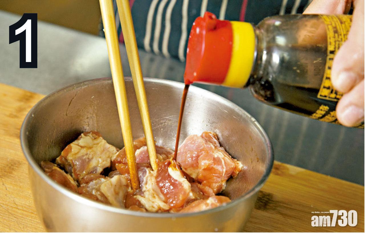 1. 一字排洗淨抹乾,加入醃料拌勻。