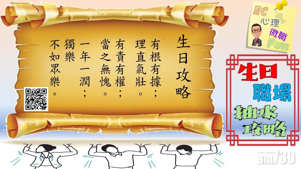 楚丁近期情緒不妥,又找不出因由。無意中被畢哥發現了;畢哥起初以為是「聖誕節症候群」,經深入討論後又排除了這個可能;因為,在楚丁來說,大部份的節日都是相約的……突然,楚丁歸納到可能是由於臨近自己的生日季節所致;這時,畢哥又故態復萌,忽然提出了偉論:《生日職場攻略》,AM730的讀者們,您有聽過這理論嗎?