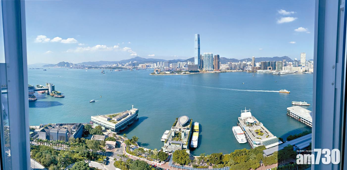 四季酒店套房客廳坐擁維港180度無敵大海景。