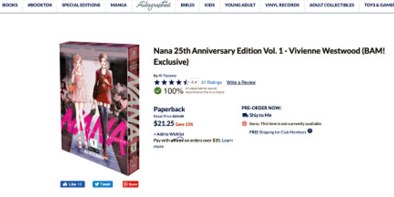 《Nana 25周年紀念版Vol.1:Vivienne Westwood版》將於10月21日在美國Books-a-Million書店先行發售,並於10月30日在Vivienne Westwood精品店發售,最後機會希望VW官網有,咁就唔使上eBay搵,捱炒價啦。