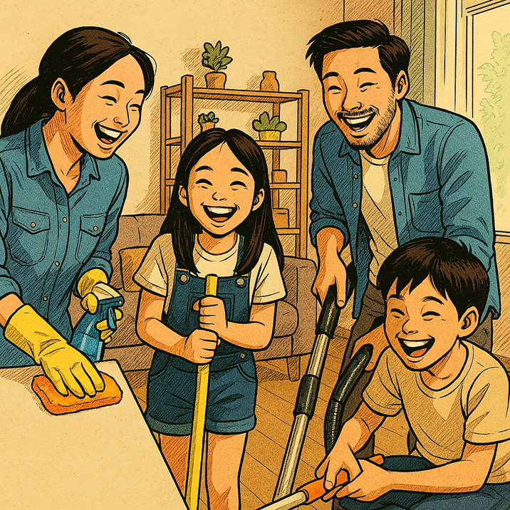 我家決定,不再聘請外傭了。家務事,由我們一家四口共同分擔。
