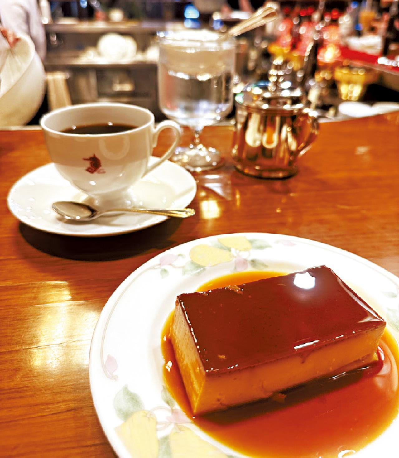 沿用創辦人野田光彥一直做著的虹吸式沖煮咖啡方法,穿著體面的咖啡師兼顧多個虹吸咖啡壺運作,雙手雖然忙碌,但不失專業優雅。我揀選了由三種咖啡豆混合而成的のだブレンド(blended coffee),上枱時伴隨以冰鎮著的鮮忌廉,加進咖啡喝起來更香滑。最期待的香甜布甸,面層焦糖帶微苦,質感偏硬,是迎合喝咖啡的成人口味。完成輕量甜食,就繼續我的福岡快閃之旅。