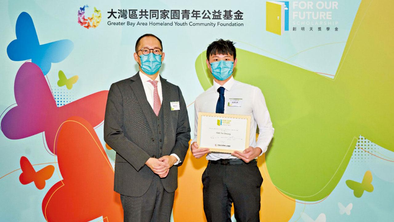 大灣區共同家園青年公益基金主席黃永光(左)和得獎者郁天翔(右)。