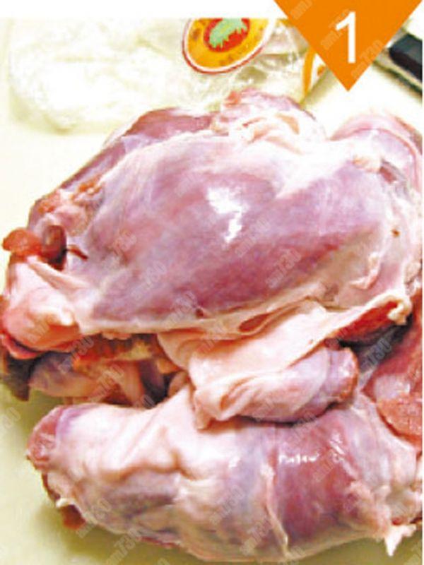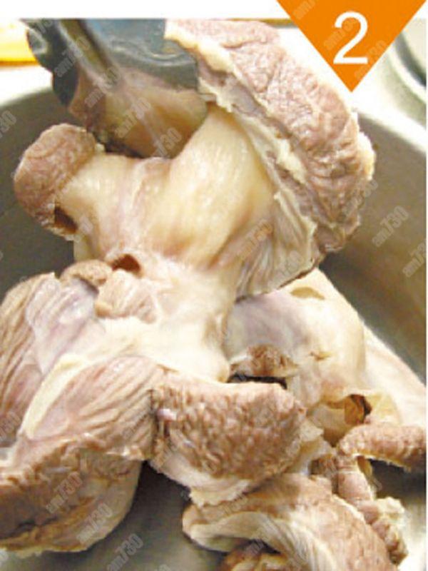 1.蝴蝶腩用鹽擦洗淨,以薑蔥飛水,沖淨抹乾。