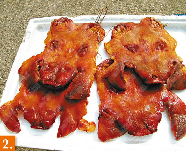 2. 客家人至愛的臘豬頭,每星期只做一兩個,工序繁多,要曬四日,食時把豬頭切成三份,皮向下連米煮。