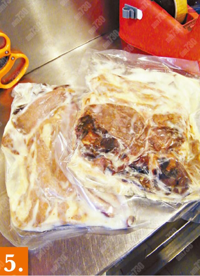4. 晾肉是乾豬肉片,選用豬扒生曬;全瘦腸亦叫衛生腸,兩款也可放上飯面蒸。(晾肉/全瘦腸$280/斤)