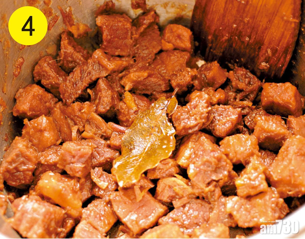 3-4. 下牛冧肉,煮約15分鐘至汁收。